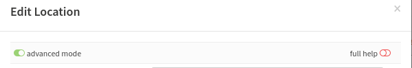 Das alleine reicht aber nicht. In der Location muss man auch noch zwei Parameter anpassen. Die werden allerdings erst sichtbar, wenn man den advanced mode einschaltet.